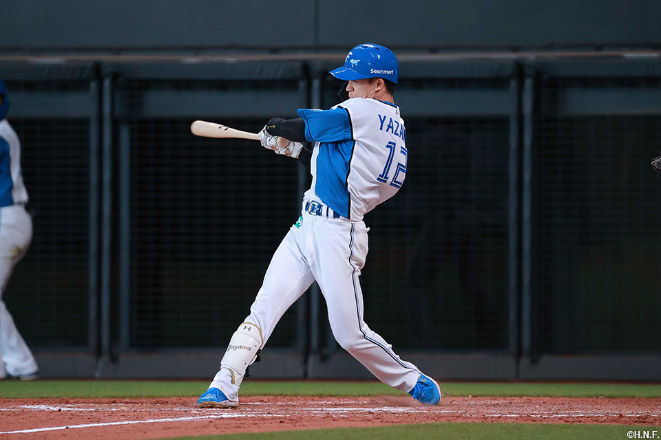 5番 万波 遊安 外角のスライダーをショートへ打ってヒット 1塁 |