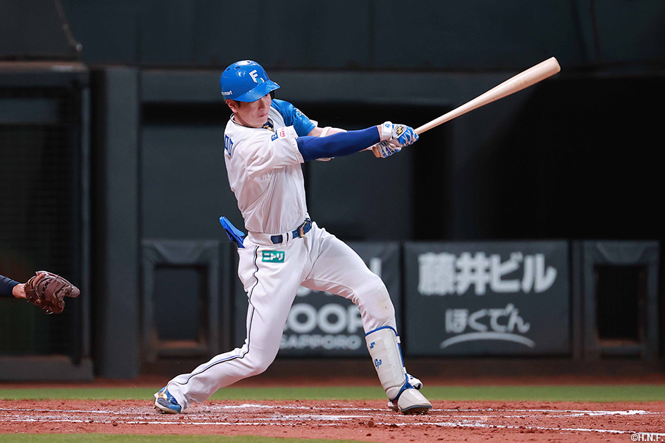 1番 松本剛 左2 内角のスライダーをレフトへ打ってツーベース 2塁 |