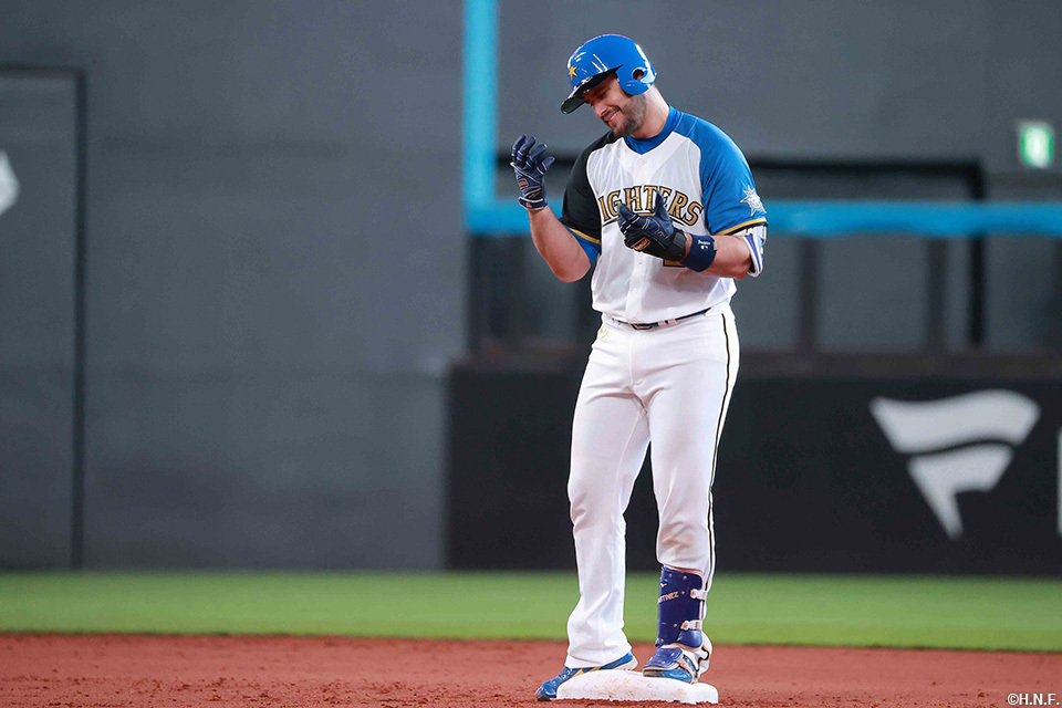 投手 上沢 8番 宜保 右2 内角高めのカットボールをライトへ打ってツーベース 2塁 |