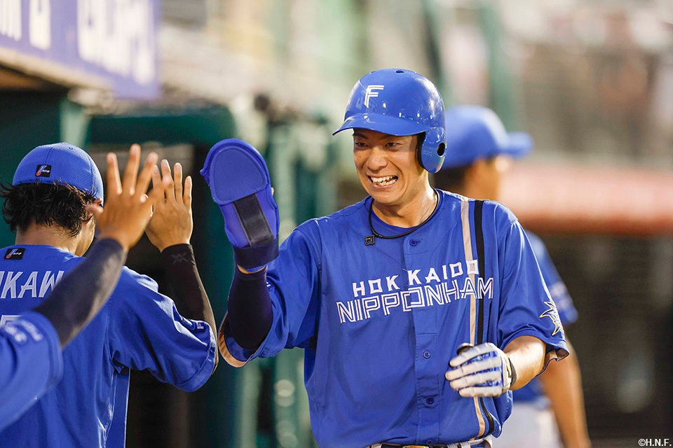 2番 松本剛 中安 外角のカーブをセンターへ打ってヒット 1塁 |