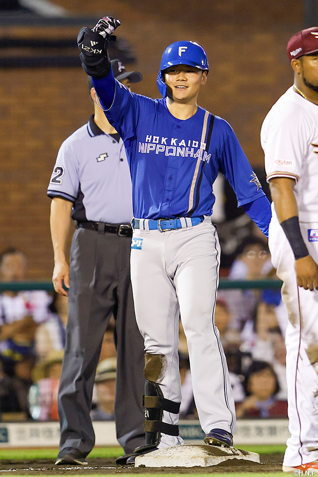 2番 松本剛 二ゴロ ランナー2,3塁 外角のカットボールを打つもセカンドゴロ 3塁 楽2-3日 2アウト ![]() 2