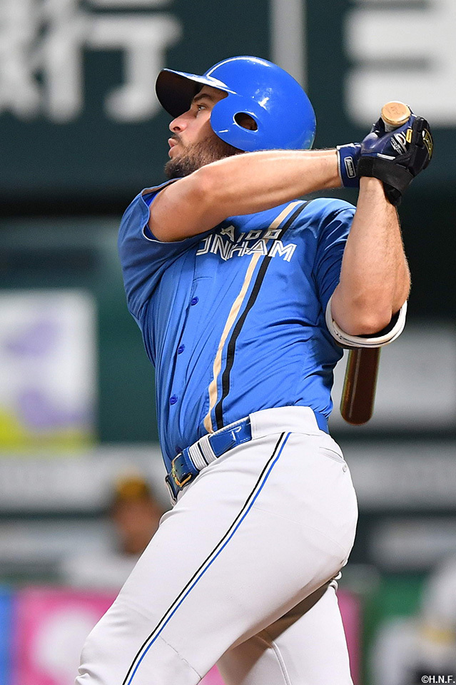 3番 マルティネス 中2 ランナー1,2塁 外角のストレートをセンターへタイムリーツーベース! 2,3塁 ソ0-7日 ![]() 0
