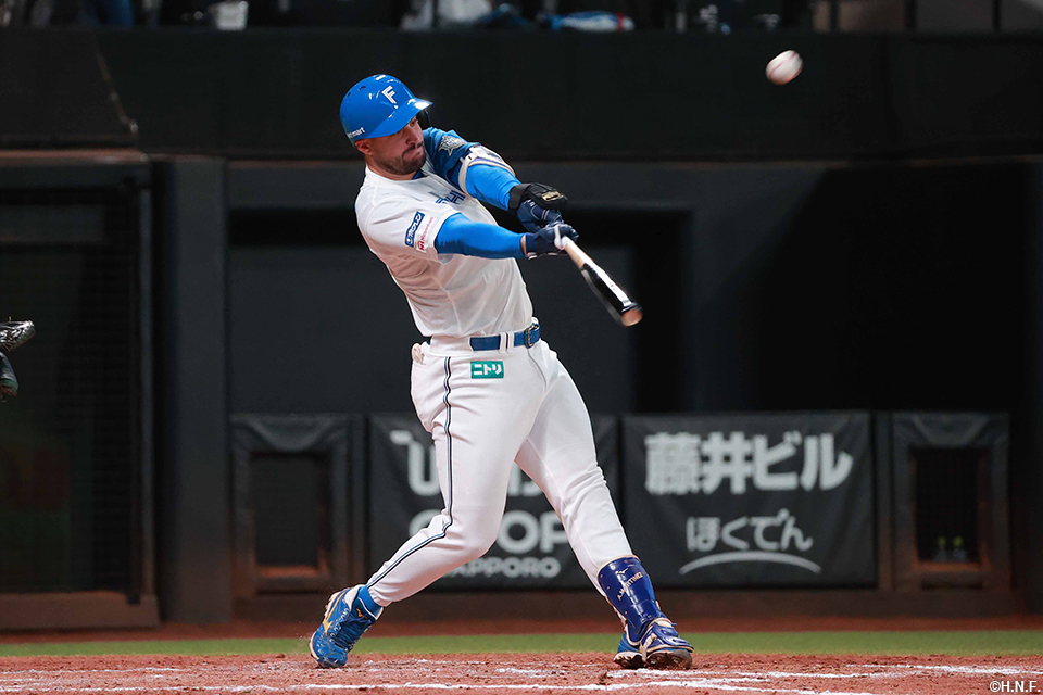 6番 松本剛 左安 外角低めのカーブをレフトへ打ってヒット 1塁 |