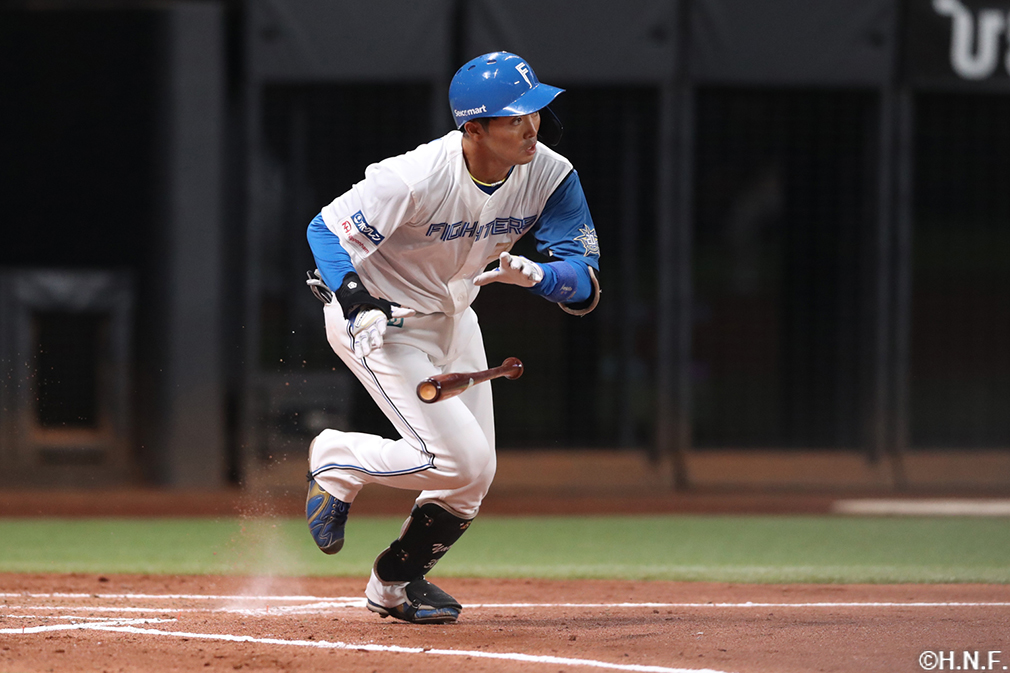 6番 松本剛 左安 内角低めのツーシームをレフトへ打ってヒット 1塁 |