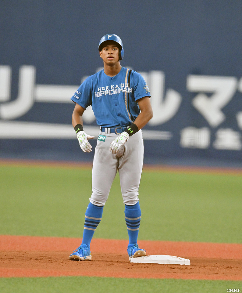 6番 松本剛 四球 フォアボールを選ぶ 1塁 |