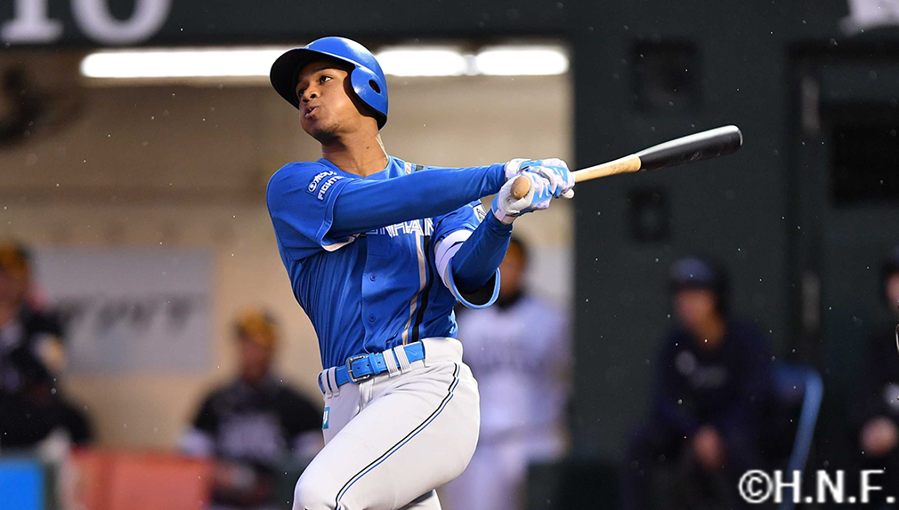 3番 万波 左安 外角低めのフォークをレフトへ打ってヒット 1塁 |