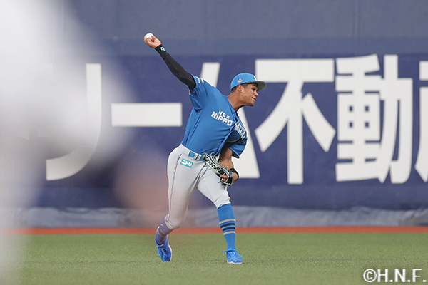8番 頓宮 右安 ランナー2,3塁 外角低めのフォークをライトへ先制タイムリーヒット! オ1-0日 ![]() 1