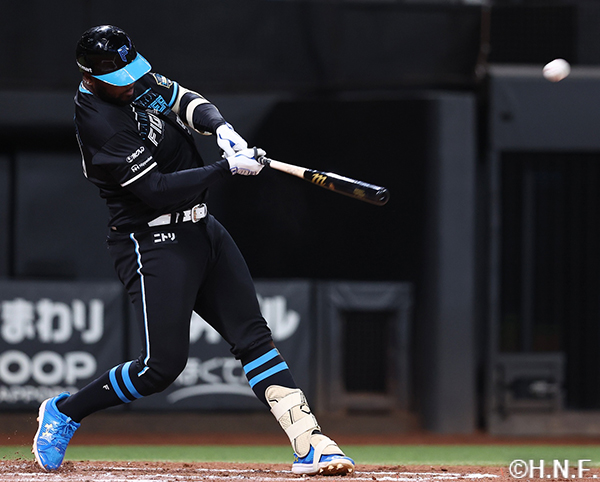 2番 松本剛 空三振 外角低めのチェンジアップを空振り三振 2アウト |