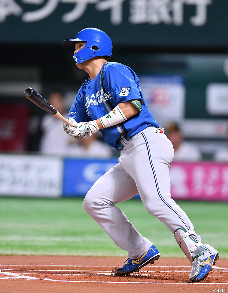 2番 松本剛 中安 高めのストレートをセンターへ打ってヒット 1塁 |