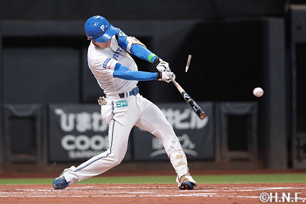 5番 松本剛 遊ゴロ 内角低めのカットボールを打つもショートゴロ 2アウト |