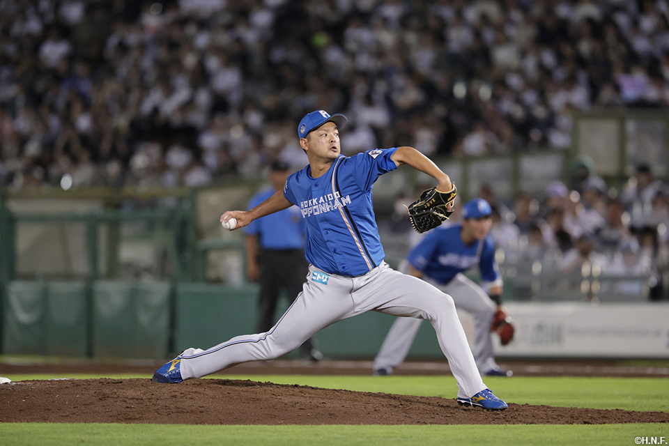 3番 松本剛 右飛 ランナー3塁 外角低めのスライダーを打つもライトフライ 2アウト |