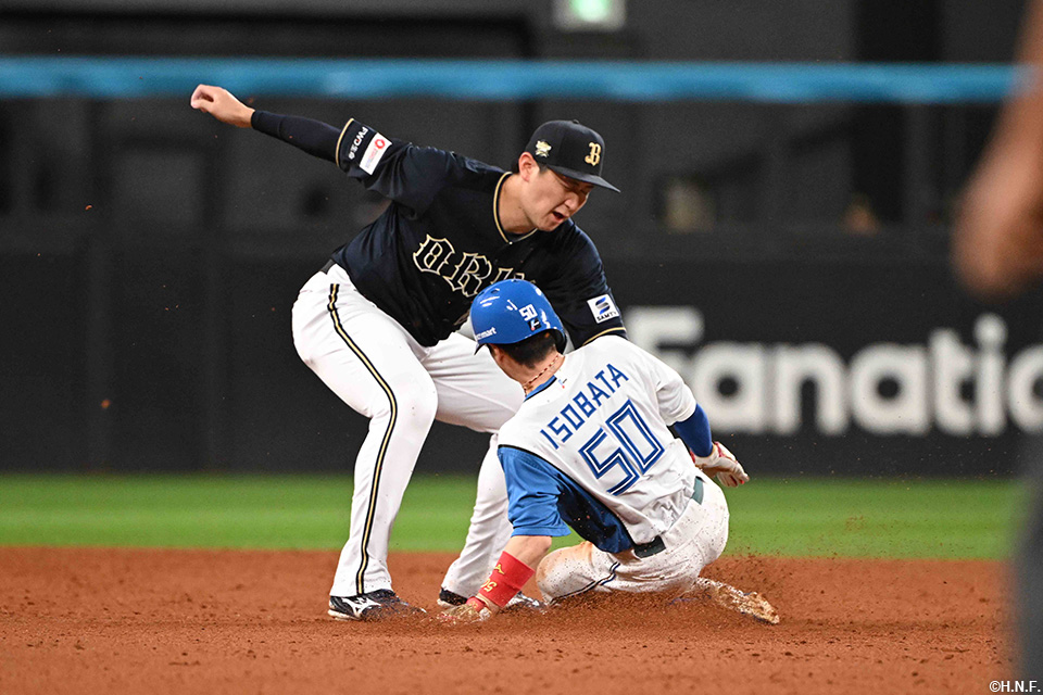 3塁走者松本剛:ホームスチールを試みるもアウト 3アウトチェンジ |