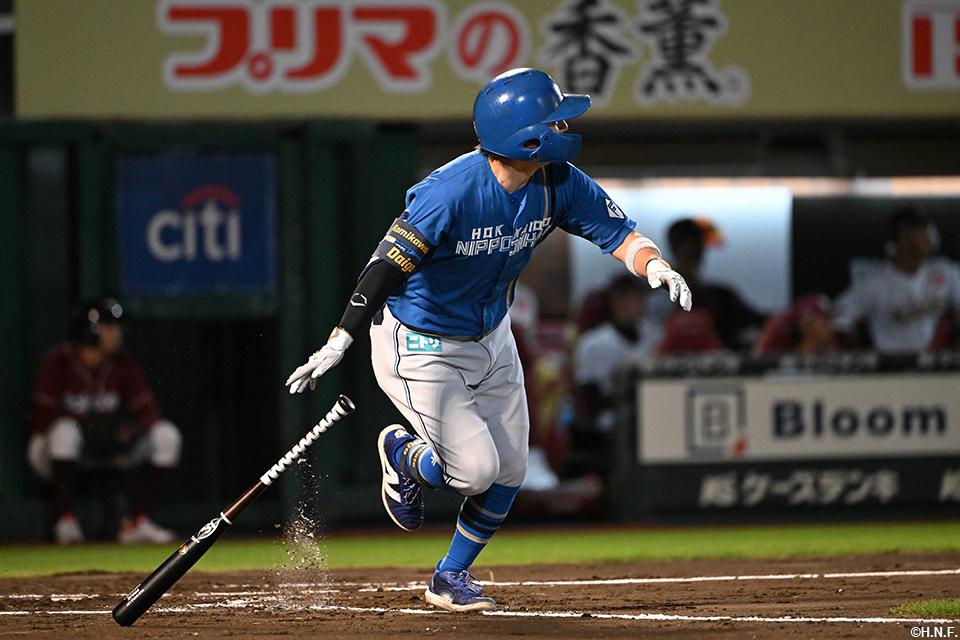 9番 松本剛 左2 内角低めのツーシームをレフトへ打ってツーベース 2塁 |