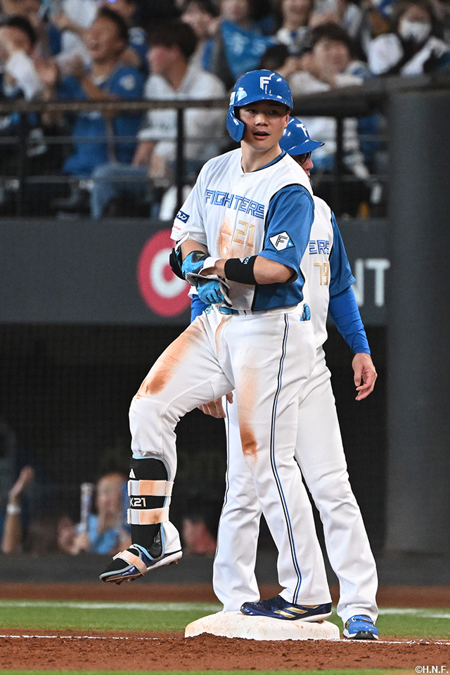 3番 清宮 右安 ランナー2,3塁 ど真ん中のスライダーをライトへ同点タイムリーヒット! 1塁 日2-2ロ ![]() 2