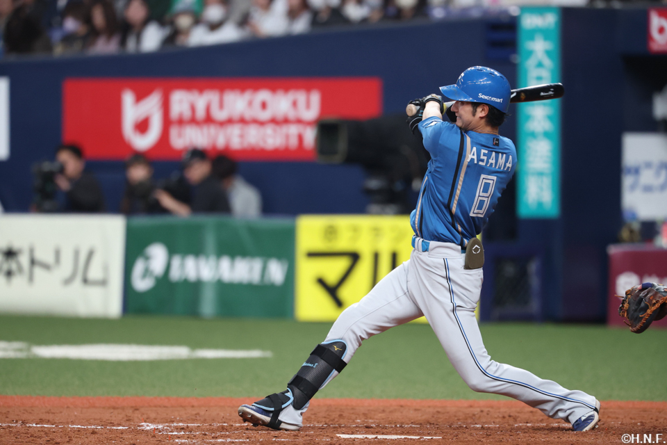 3番 淺間 右安 ランナー1,2塁 高めのツーシームをライトへ同点タイムリーヒット! 1,3塁 オ2-2日 ![]() 2