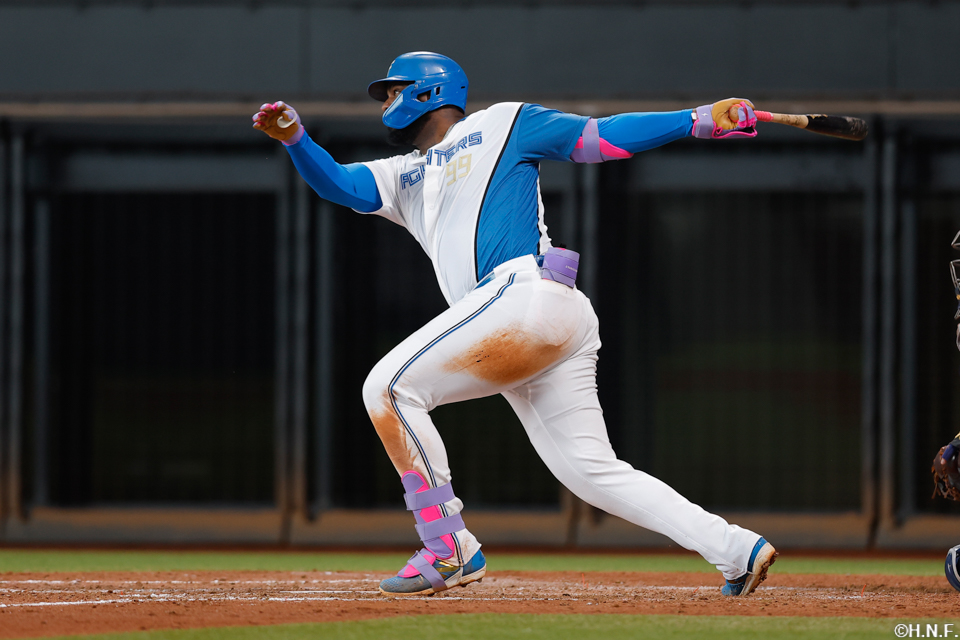 6番 万波 右2 外角低めのフォークをライトへ打ってツーベース 2塁 |