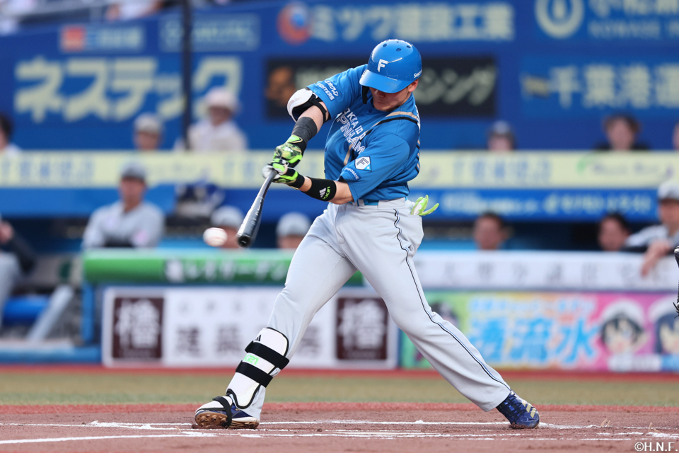 6番 安田 右安 内角のツーシームをライトへ打ってヒット 1塁 |
