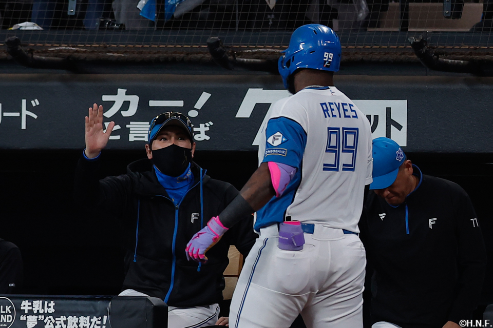 ライトへ本塁打を放ったレイエス選手