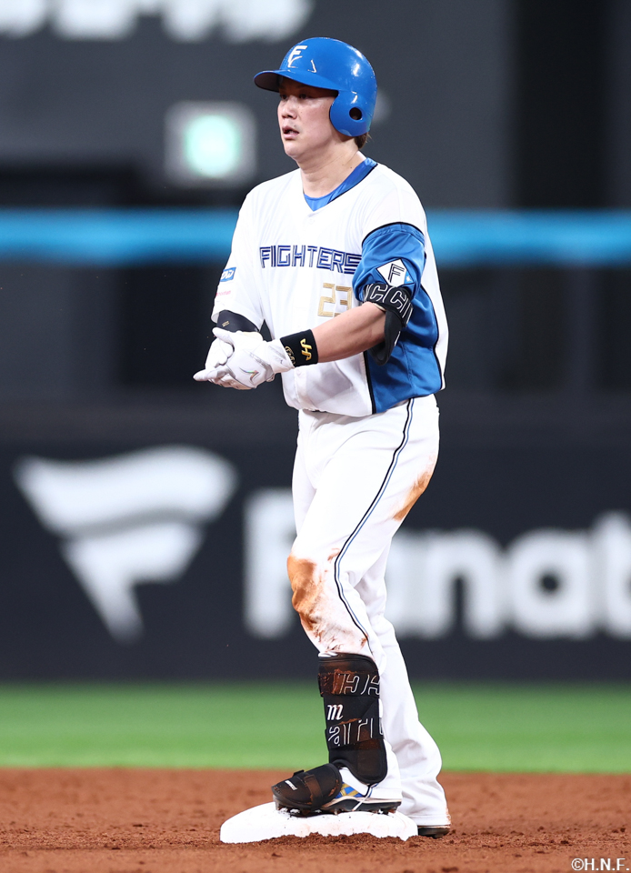 7番 松本剛 中飛 ランナー1塁 外角のストレートを打つもセンターフライ 3アウトチェンジ |