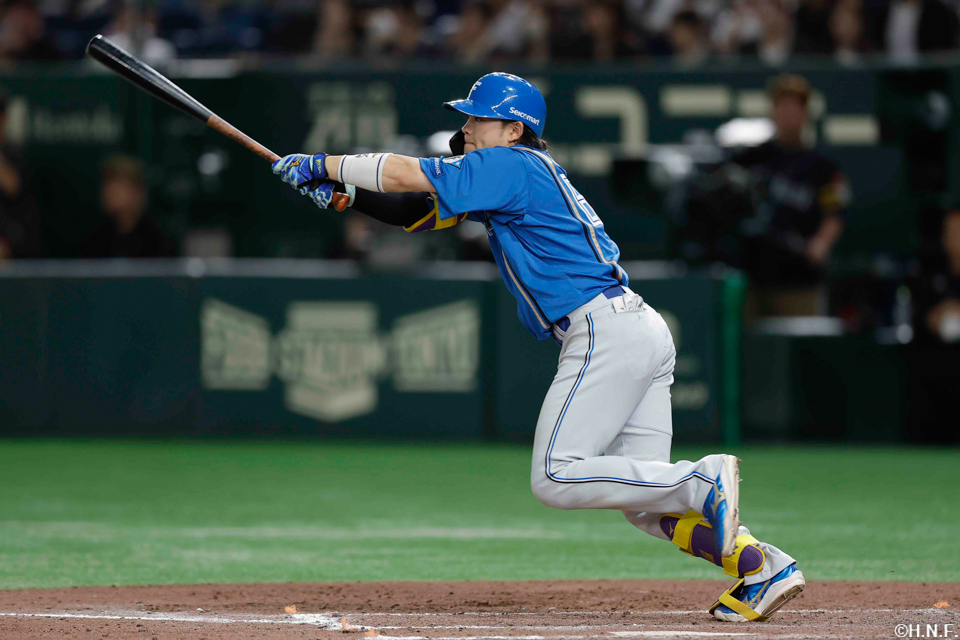 7番 万波 中安 ランナー1塁 内角のツーシームをセンターへ打ってヒット |