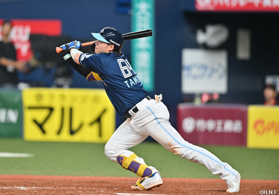 9番 田宮 左安 外角低めのチェンジアップをレフトへ打ってヒット 1塁 |