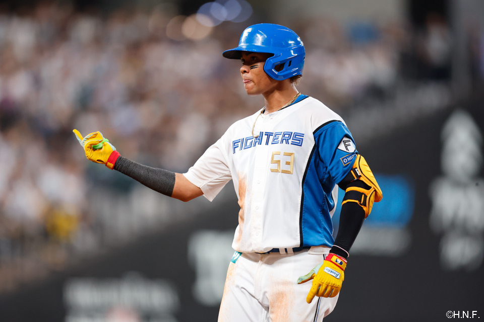 6番 野村 右2 満塁 低めのチェンジアップをライトへサヨナラタイムリーツーベース! 日6-5オ ![]() 6