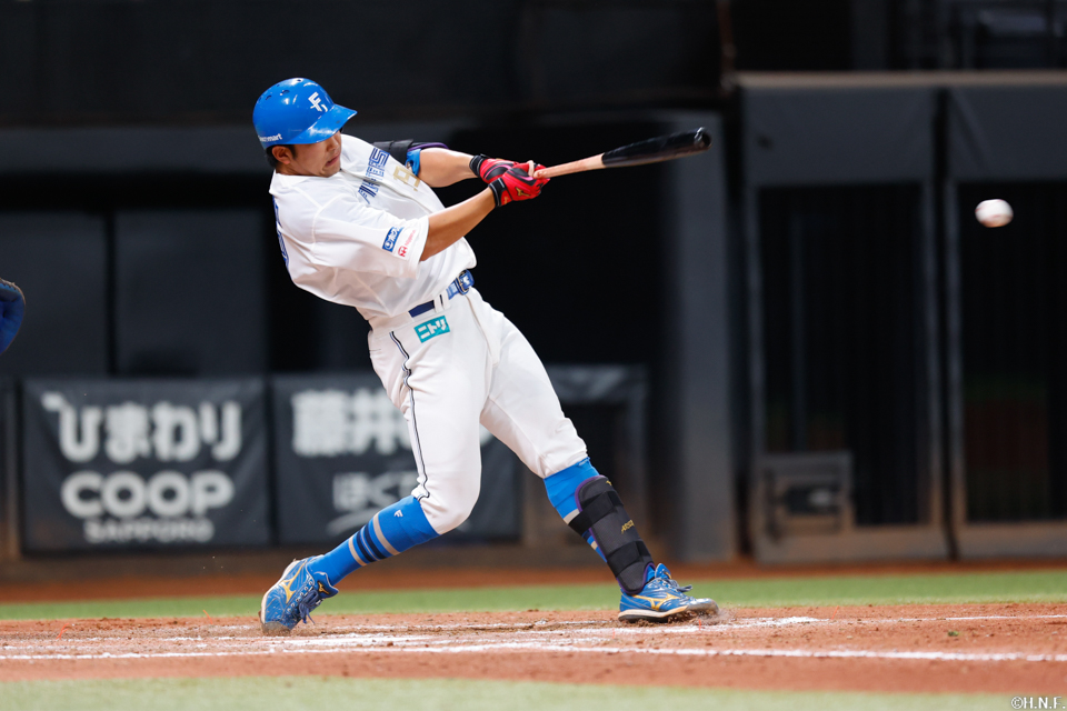 5番 松本剛 三併打 ランナー1,2塁 外角のストレートを打つもサードゴロのダブルプレー 2アウト |