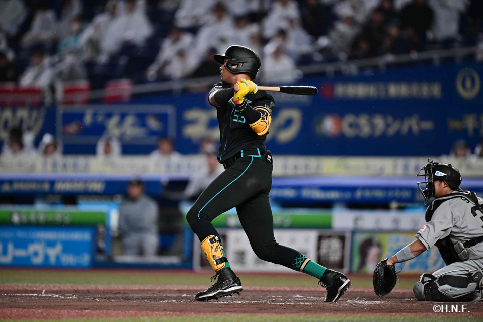 5番 万波 四球 フォアボールを選ぶ 満塁 |