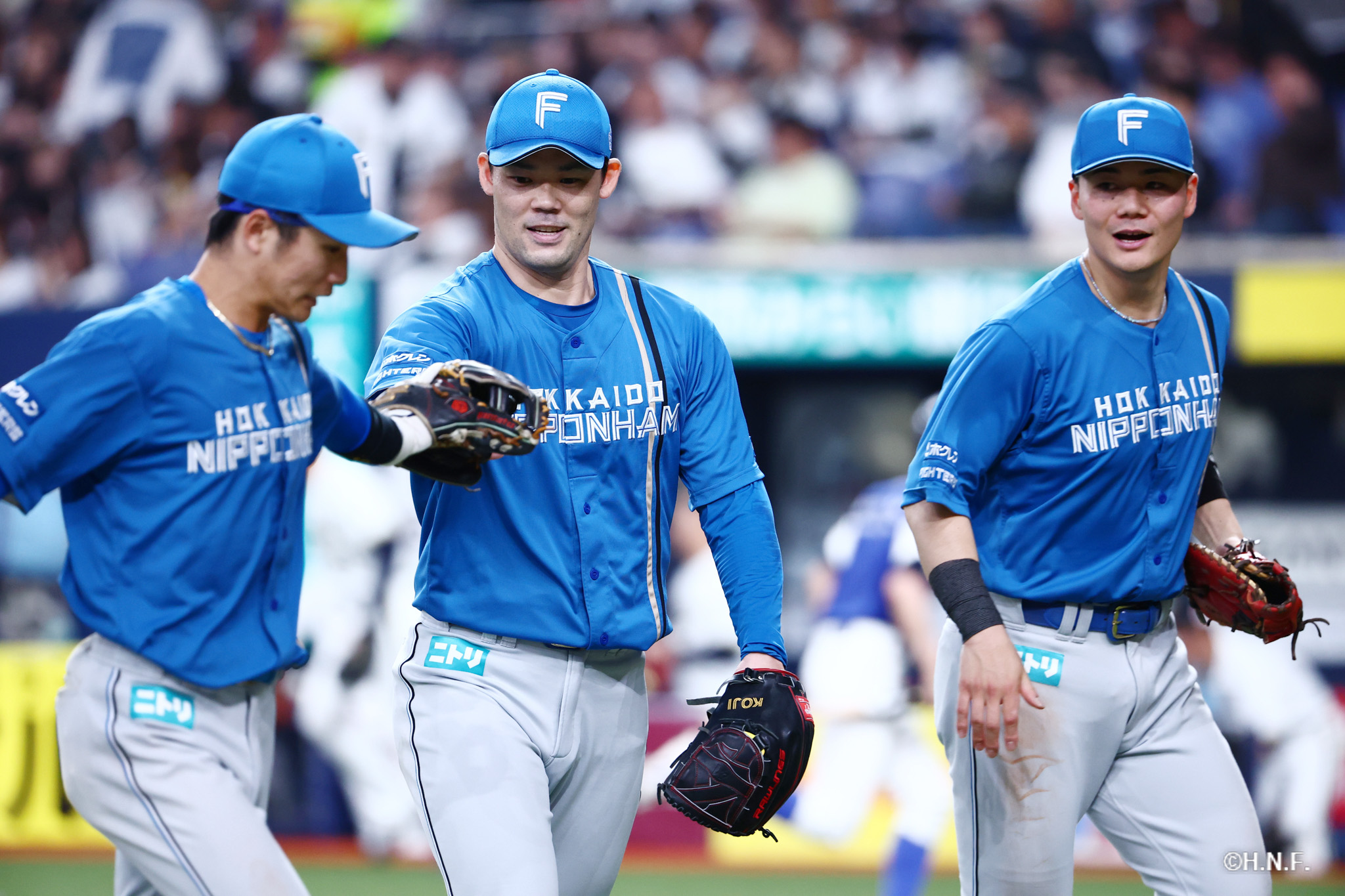 3番 レイエス 空三振 内角低めのツーシームを空振り三振 3アウトチェンジ |