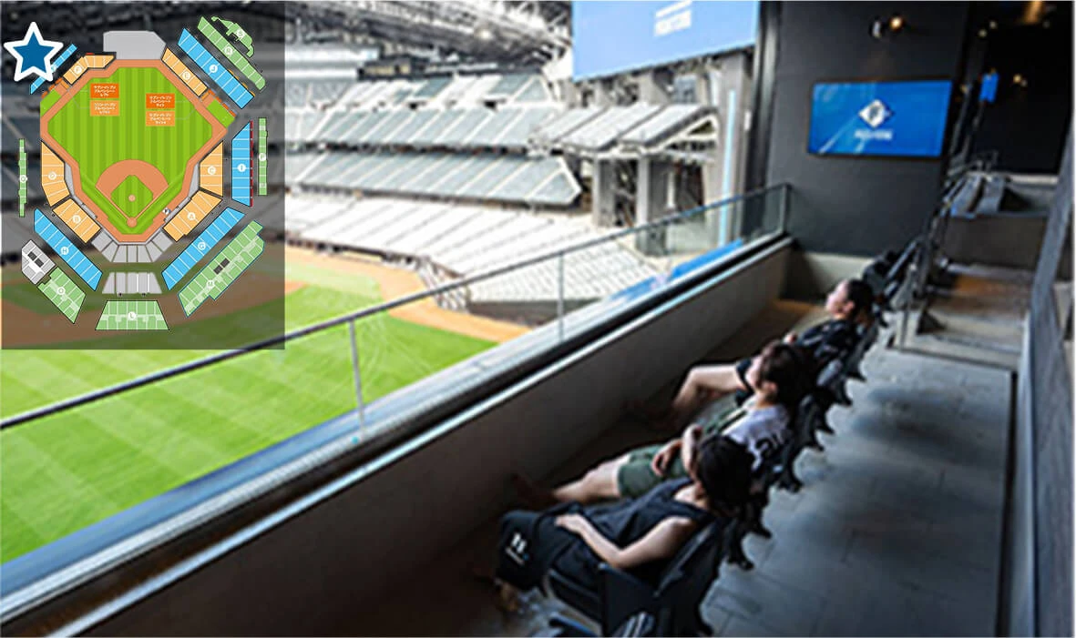 試合観戦しながら天然温泉とサウナに入ることができる、世界初のシートです。