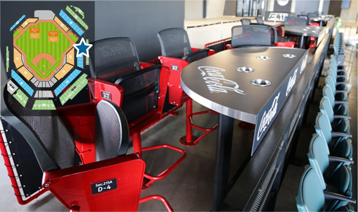 コカ・コーラ社製のソフトドリンクが飲み放題のテーブルシート。 コカ・コーラ社製ソフトドリンク飲み放題の対象は売り子からの提供のみとなります。店舗での購入は通常価格です 飲み放題MENUは変更される場合があります。予めご了承ください