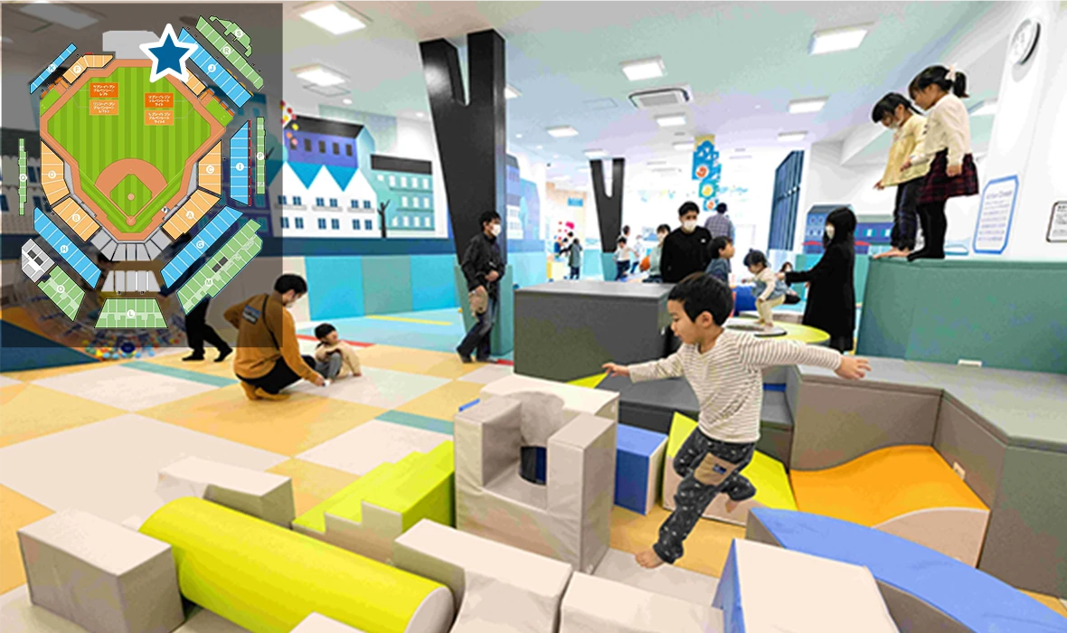 12球団初、球場内にブランコを設置したボックスです。広さもありご家族でゆったり使っていただけます。