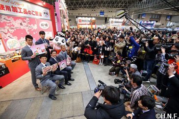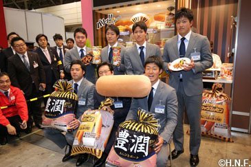 北海道日本ハムファイターズの栗山英樹監督をはじめ、コーチングスタッフと選手の計78人が1月21日(土)、千葉県内で開催されたニッポンハムグループ展示会に参加しました。オープニングセレモニーでは一人ずつアナウンスに導かれてステージに登壇。その後は3グループに分かれ、会場内に設けられた商品PRブースを回りシャウエッセンや生ハムなどの試食を堪能。2月1日(水)からの春季キャンプを前に、イベントのキャッチフレーズでもあるグループの「つなぐチカラ」を体感しました。