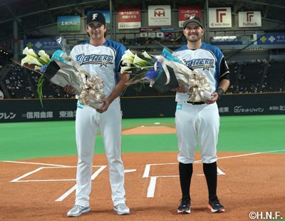 北海道日本ハムファイターズは3月2日(木)、札幌ドームでのオープン戦・中日ドラゴンズ戦の試合前、第4回ワールド・ベースボール・クラシック(WBC)にメキシコ代表として出場するとブランドン・レアード選手の壮行会を開きました。セレモニーでは少年少女のファン代表から、それぞれ花束を手渡されて激励を受けました。両選手はこの試合をもってチームを一時離れて、メキシコ代表に合流します。2選手ともに順調に調整を消化。メンドーサ投手は故郷の威信をかけ、母の出身国であることから選出されたレアード選手とともに、ファイターズで貫く全力プレーで3年ぶりに開催される野球の頂上決戦へと挑みます。