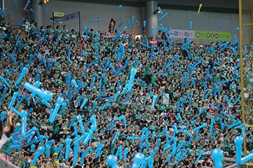 ロケット風船を膨らませて、ファン全員でカウントダウンし、スタジアム全体で青一色に打ち上げましょう!!