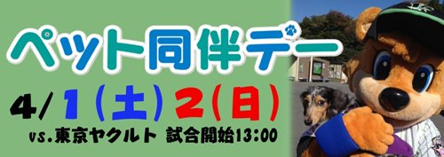 ファイターズ鎌ヶ谷スタジアムでは、4月1日(土)、2日(日)のイースタン・リーグ公式戦(東京ヤクルト戦)を、毎年好評を頂いている<ペット同伴デー>として、レフト側外野芝生席をペット同伴エリアといたします。カビーの大好きなペットの皆さんは入場無料!かわいいペットたちと野球観戦をお楽しみください。
