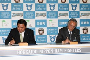 北海道日本ハムファイターズは3月25日(土)、北海道足寄町とそれぞれが有する特徴ある資源や取り組みを有効活用し、連携を深めることにより健康で元気なまちづくりを進めるため、2017年度から3年間のパートナー協定を締結しました。道内ではニセコ町、美唄市、新十津川町、紋別市に次ぐ5市町目の協定締結になります。