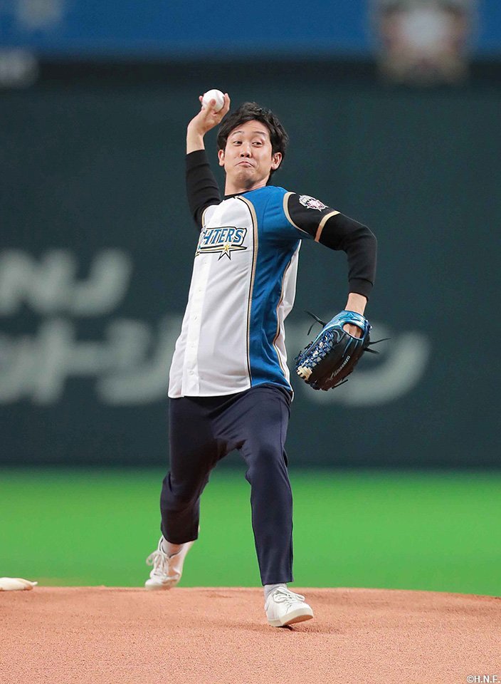 北海道日本ハムファイターズは今シーズンの開幕戦となった3月31日(金)の埼玉西武ライオンズ戦(札幌ドーム)で、タレントに俳優とマルチな活躍を見せる江別市出身の大泉洋さん(43)に始球式を務めていただきました。