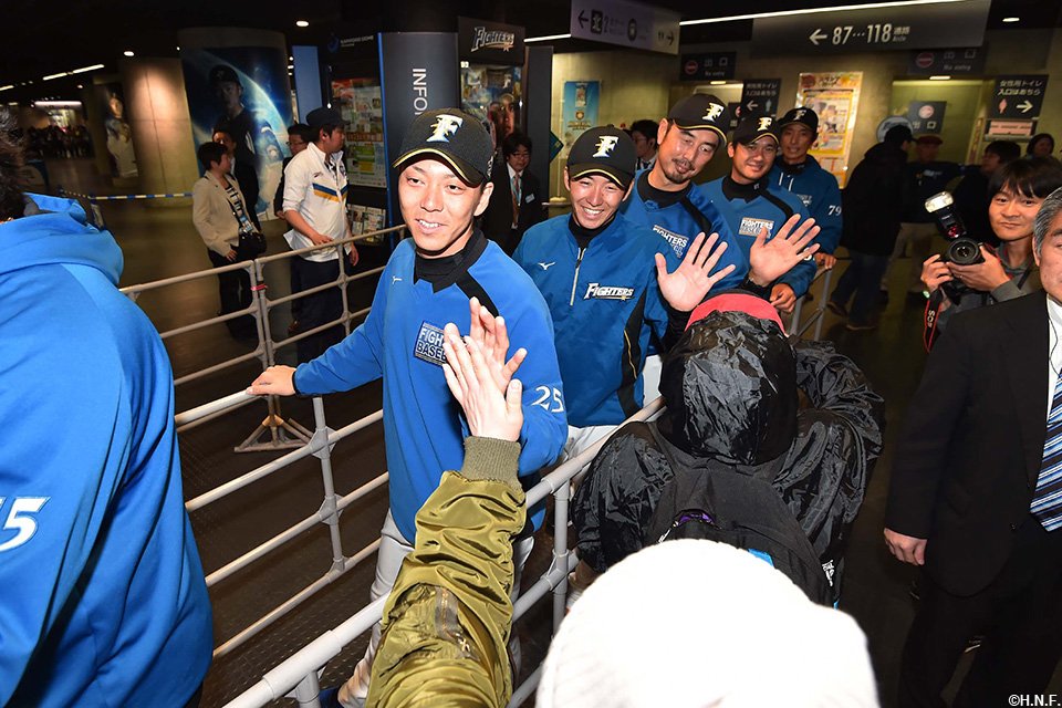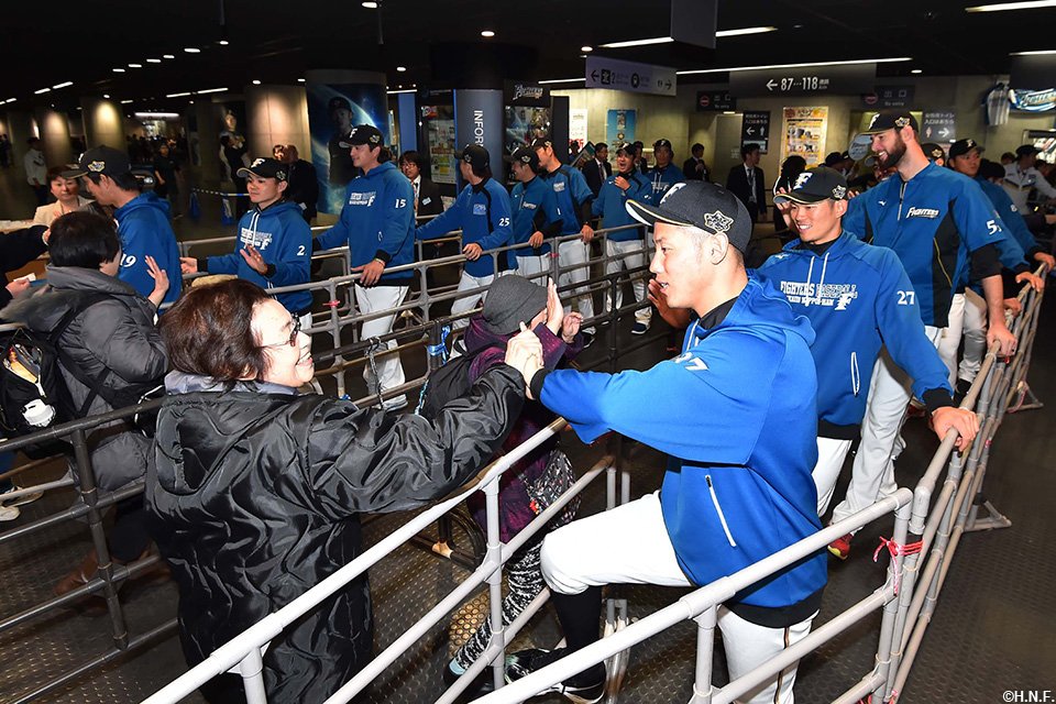 また、開場時には2004年から続けているウエルカムハイタッチでご来場者をお出迎え。手のひらから伝わるファンの皆様の期待を感じ取り、立ち見が出る満員のスタンドの雰囲気にも後押しされ、力強く2017年のペナントレースへ踏み出しました。
