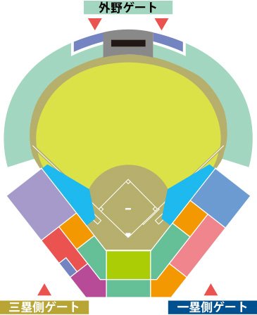 - ●柵など球場備品を使用しての敷物等の固定はお断りいたします。なお、使用された場合は撤去いたします。