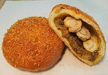 噴火湾産のホタテを贅沢に使ったカレーパンを、揚げたてサクサクでご提供します。
