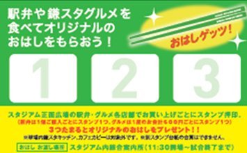 | ①対象店舗で対象商品をご購入いただき、スタンプカードをお受け取りください ②駅弁/空弁は1個、その他商品は600円ごとにスタンプ1つ ③スタンプが3つ貯まったら、2Fコンコース総合案内にてプレゼントとお引き換えください |