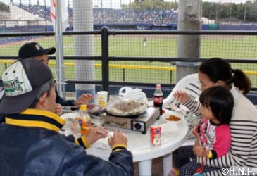 今年もやります、大好評の<鎌スタ☆ジンギスカンシート>!バックネット裏シート(指定席)にライト芝生席後方球場外周路のジンギスカンシートが付いて、北海道名物の松尾ジンギスカンを食べながら、グループ(最大4名様まで)でゆっくりと試合観戦できるとっておきのシートです。