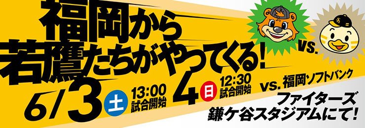 6月3日(土)・4日(日)、ファイターズ鎌ケ谷スタジアムに福岡ソフトバンクホークスを招いて、毎年好評のウエスタン・リーグ所属チームとのファーム交流戦2連戦を今年も開催します。チケットは5月20日(土)<ファンクラブ会員は5月19日(金)>発売、鎌スタ年間パスポート会員および鎌スタ☆キッズパスポートは外野自由席にご入場いただけるほか、九州・北海道出身または在住、そして酉年生まれの方は当日券が半額になります。福岡からやってくる若鷹軍団とヤングファイターズの熱い戦いにどうぞご期待ください。