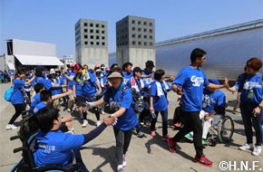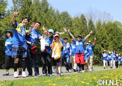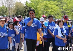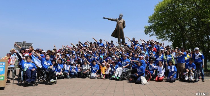 閉会式で稲葉SCOは「散歩日和でいい汗がかけて気持ちよかったです。一歩一歩が社会貢献になるこの活動は大変意義のあるものですし、コミュニケーションを取りながら楽しく参加させてもらいました」と充実感いっぱいの表情を見せていました。また、ウォーキングにも参加した車椅子ソフトボールチーム「北海道ノースランドウォーリアーズ」の藤原雄介選手は「たくさんの方にご参加いただきありがとうございます。7月には江別で大会がありますので、ぜひそちらへもいらしてください」と話していました。次回は6月10日(土)、ファイターズOBの稲田直人さんをゲストに迎えて実施します。たくさんの方のご参加をお待ちしています。