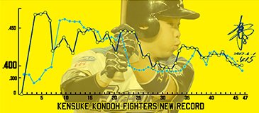3回試合の均衡を破ったのは近藤選手のバットでした。カウント1-1からの3球目、インハイのボールを引っ張り先制となる適時二塁打を放ちます。5回第3打席では左安打を記録し、この試合は2打数2安打2四球と勝利に貢献。出場47試合目で打率4割を超えるのは1974年の張本氏を上回る球団記録となりました。