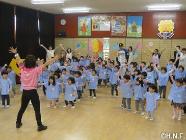 元気いっぱい踊る岩内幼稚園の園児たち