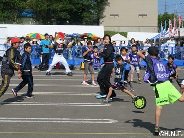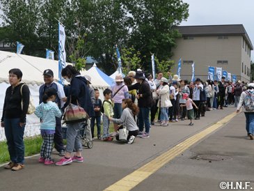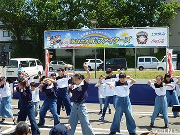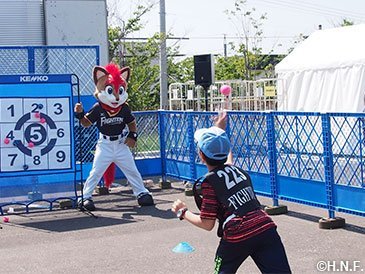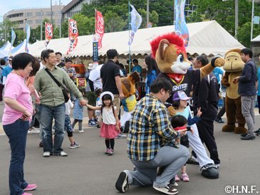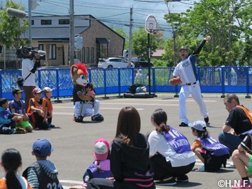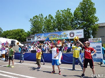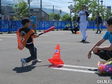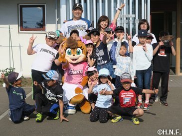 人懐っこい笑顔で迎えてくれた岩内厚生園の児童たち 二日目・三日目はファイターズガールも合流し、役場前の駐車場でステージイベントやスポーツ体験などを開催。オープン前から大行列が出来るほど、町内外から本当に多くの皆様が来場してくださいました。お手伝いいただきました岩内町役場の皆様、メンバーが100人を超えるというファイターズ岩内後援会の皆様、ご協力に心より感謝申し上げます。