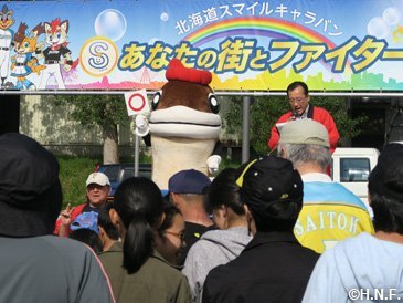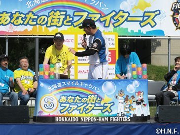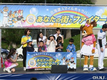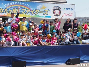 北海道の皆様と夢と感動を享受しながら皆様の街が笑顔で溢れるよう、道内各地を巡りステージイベントや施設訪問を行う“北海道スマイルキャラバン~あなたの街とファイターズ~”。2013年のスタート以来、すでに26市町村を訪問し、2017年も5町にお邪魔します。