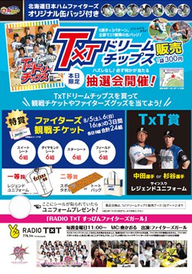 賞品の引き換えは、当日試合終了30分後までに、必ず、ご当選のチラシをお持ちの上、北ゲート2前のティーバイティーガレージドリームチップス特設ブースまでお越しください